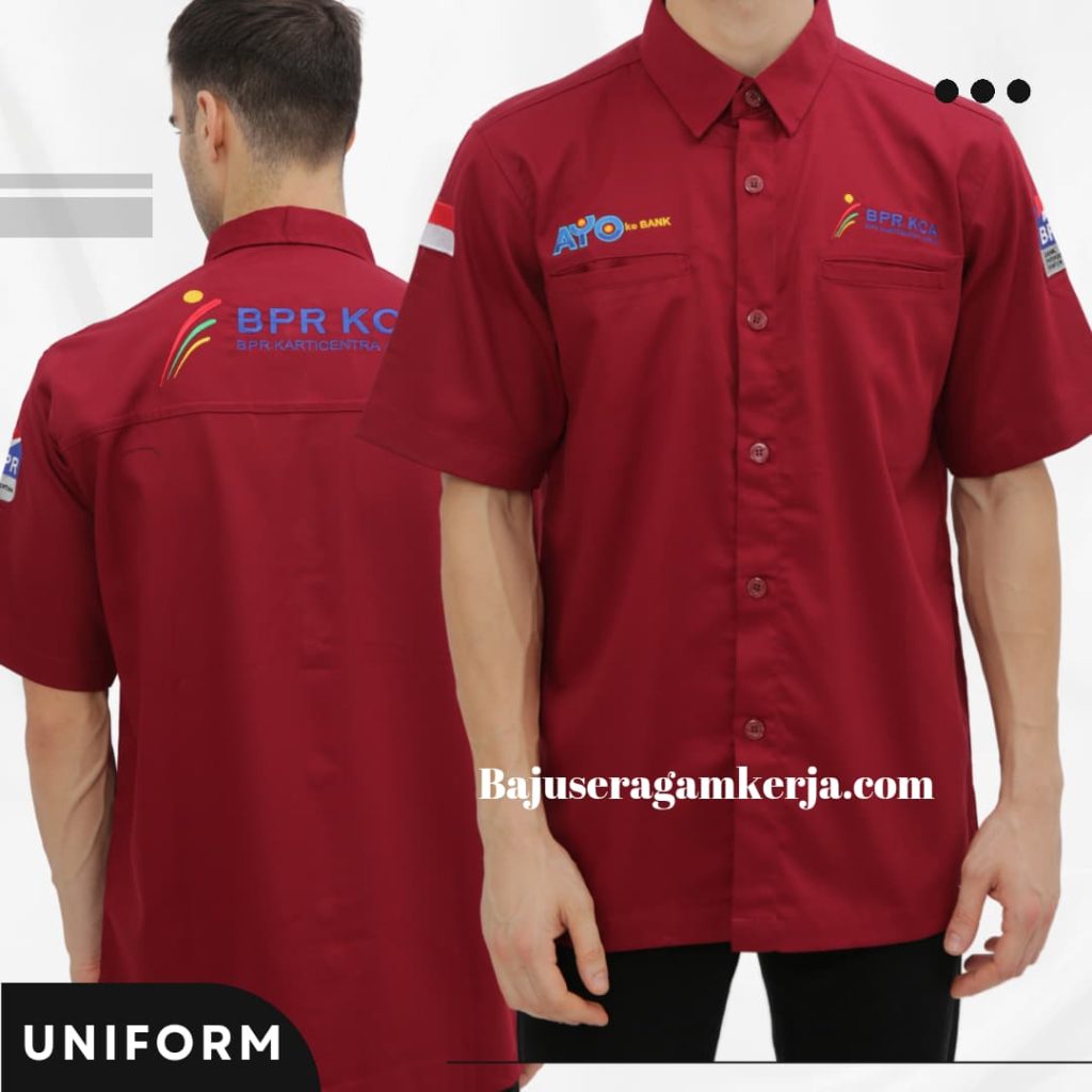 Baju seragam kerja adalah pakaian yang dirancang khusus untuk dikenakan oleh karyawan suatu perusahaan atau organisasi selama menjalankan tugasnya. Seragam ini biasanya memiliki desain, warna, dan logo yang konsisten, sehingga mudah dikenali sebagai bagian dari suatu perusahaan. Baju seragam kerja tidak hanya digunakan di sektor formal seperti perkantoran, tetapi juga di berbagai industri seperti hospitality, kesehatan, manufaktur, dan retail.